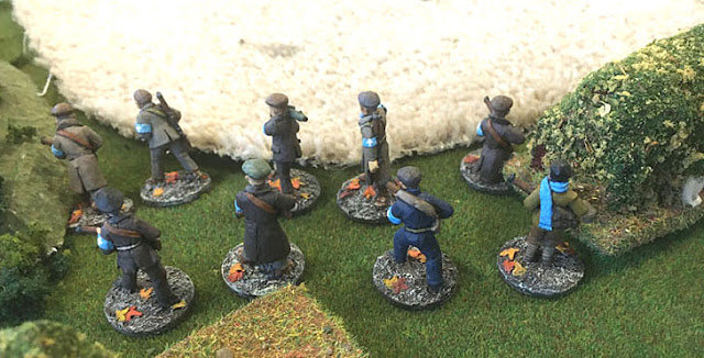 Beyond the Blue Division, the Italian CTV artillery moved forward and began to unlimber, and the anti-tank squad and Hungarian AT "Buzoganyveto" advanced ahead of them. Alone far out on the right wing were the Russian sailors of the Legion of St.Nicholas, advancing along a hedge.